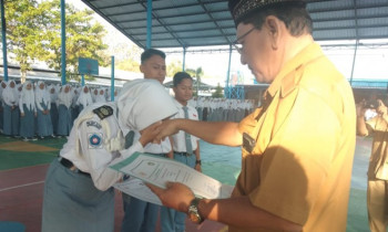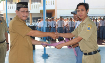 Kepala SMK Nuris Larangan, Ir. Ayub Sjahtiyani memberikan piagam penghargaan kepada Johan SS kemarin Empat siswa di SMK Nurul Islam (Nuris) Larangan Kabupaten Brebes menerima penghargaan dari sekolah setelah berhasil menggasak empat perunggu dalam Kejuaraan Provinsi (Kejurprov) Jawa Tengah pada 14-20...